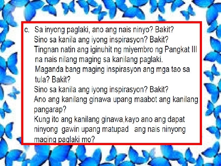 Gawain Pagkatapos Bumasa Balikan ang naging sagot ng mga bata sa pangganyak na tanong Tukuyin ang nais ninyo sa inyong paglaki.