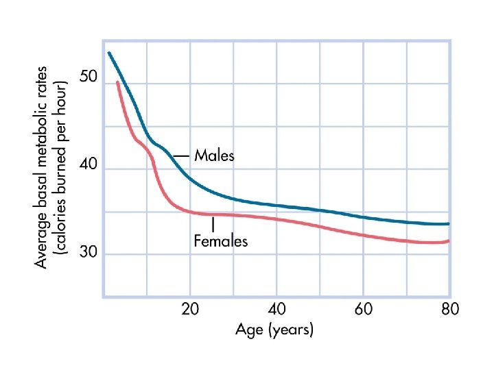 Basal Metabolic Rate The rate at which the body uses energy for vital functions while at rest ¡ Factors that influence BMR ¡ l l l Age Sex Size Genetics Food intake