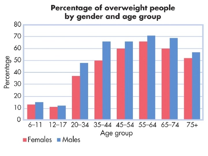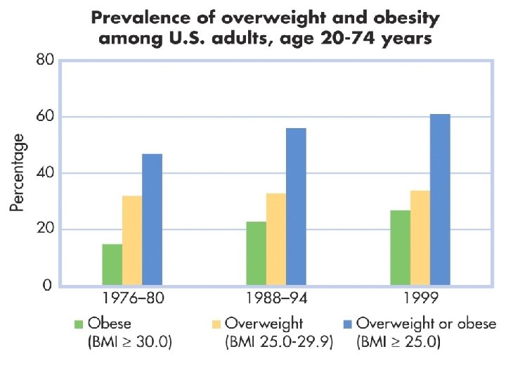 Factors Contributing to Being Overweight ¡ ¡ ¡ Highly palatable food—we eat because it tastes so good Supersize It—food portions are larger than necessary for health Cafeteria Diet Effect—more food and more variety leads us to eat more Snacking—does not cause us to eat less at dinner BMR—changes through the lifespan Sedentary lifestyles