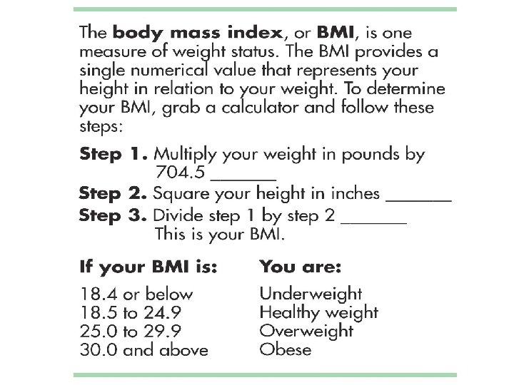 Effects of Culture and Habits on Body Weight Baseline body weight—cluster of genetic and environmental factors that cause a person’s weight to settle within a given range ¡ Weight can be affected by factors like diet, exercise, and daily habits (e. g. , stairs instead of elevator) ¡