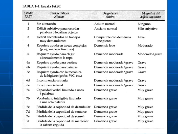 EVOLUCIÓN 1 n n Demencia de larga evolución, totalmente dependiente para las ABVD, deterioro cognitivo muy grave, trastorno de la deglución con malnutrición y úlceras por presión, que acude por octava vez al hospital en los últimos 3 meses, con empeoramiento progresivo. FAST (Functional Assesment Statgin Tool): 7 d. • > 7 c deterioro funcional severo