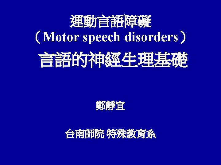 Motor Speech Disorders ‘’ Disorders of speech resulting from neurologic impairment affecting the motor