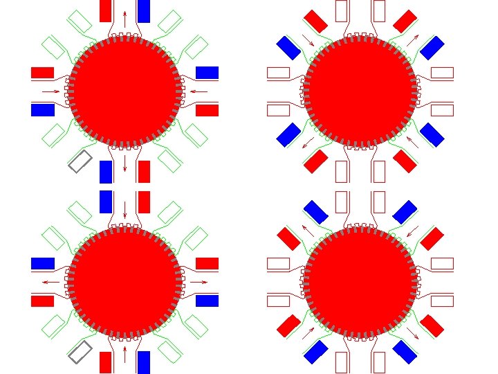 PERCORSO DELLE LINEE DI FLUSSO (alimentazione della fase A con I>0) come si vede dal percorso delle linee di flusso, se si usa la laminazione standard delle macchine elettriche, le linee di campo sono perpendicolari al piano di laminazione nella zona della corona statorica (elevate perdite nel ferro)