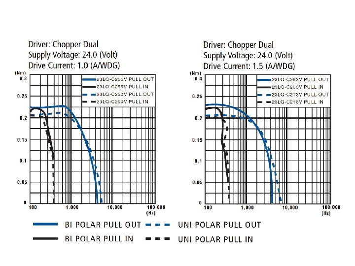 DINAMICA DEI MOTORI PASSO-PASSO curve caratteristiche Cm coppia di trattenimento coppia di agganciamento holding torque pull-in torque coppia di sganciamento pull-out torque campo di risposta start-stop region campo di funzionamento continuo slew range f (n°passi/s)