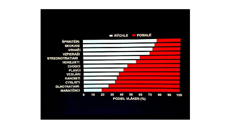 Typy svalových vlákien 100 ms 50 ms 10 x nízka