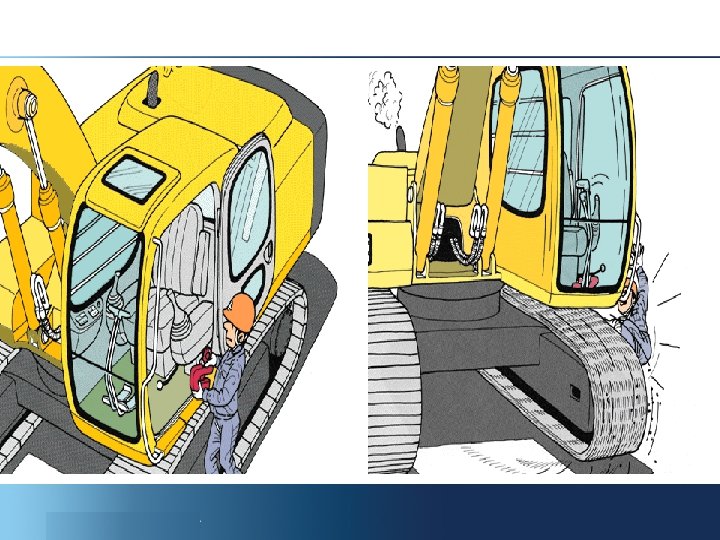 3. İş Makineleri ile Yapılan Çalışmalarda Emniyet Tedbirleri Çalışma ortamında bulunan şahısların ortamdan uzaklaşması ve Emniyetli bir yerde durması sağlanmalıdır. Araca çıkarken, tutamaklardan tutunarak çıkılmalı, İki elle tutunarak araca çıkmak için eller serbest olmalı , Direksiyon veya levyeler tutamak olarak kullanılmamalı, Kayma ve düşmeye karşı dikkatli olunmalıdır. Koltuk en iyi şekilde ayarlanmalı ve Emniyet kemeri takılmalıdır. Operatör platformu ve kabini korkuluklarla korunmalı, Kazı alanına girip çıkmak için uygun yollar olmalı 100 metre mesafede kavlak kontrolü yapılmalıdır. 23