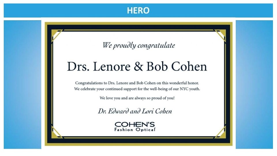 We expresses our gratitude for and admiration of the work Dr. Angela Diaz and the entire staff at the Mount Sinai Adolescent Health Center do for the youth in our community! The Cullman/Sicher Family