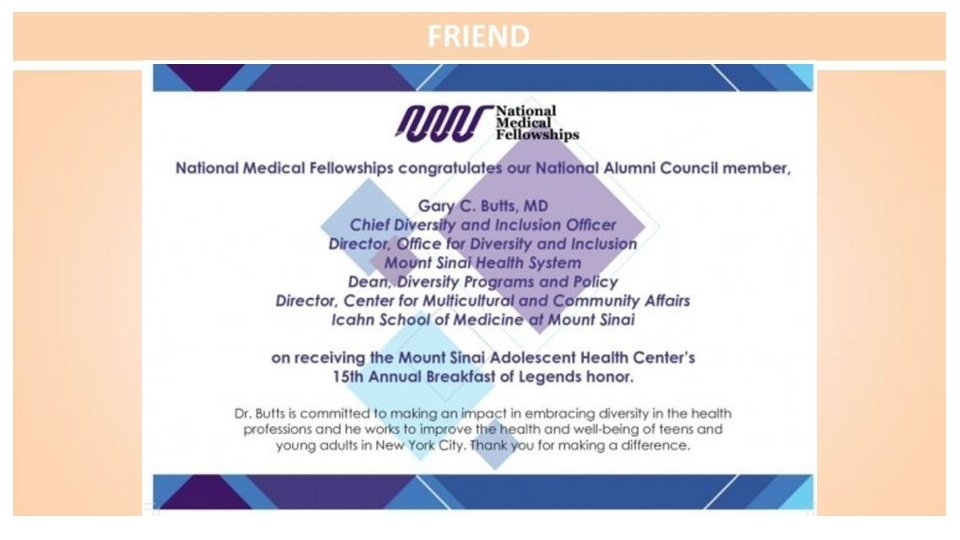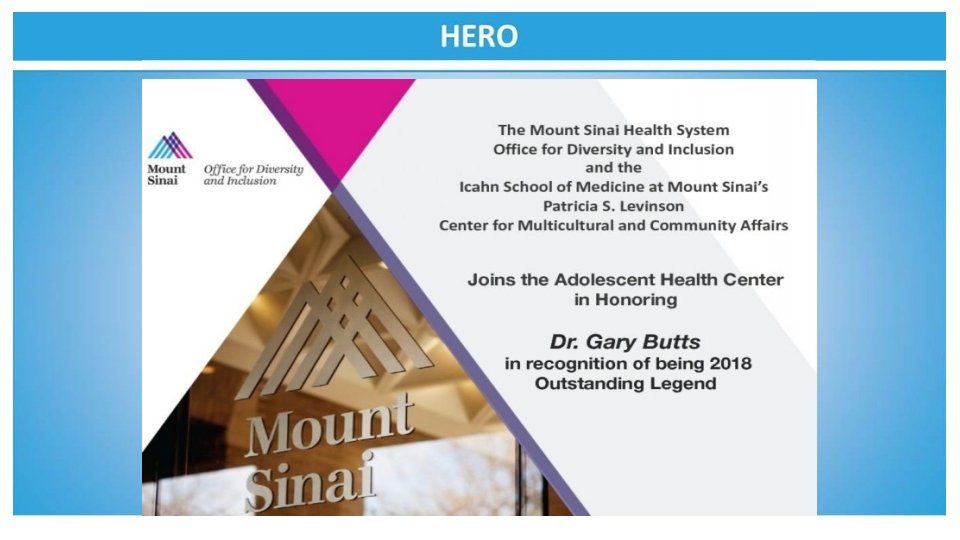 Congratulations and thank you to Gary Butts, MD We are grateful to you for directing the Mount Sinai Health System into a position of recognized leadership in diversity for health care systems. I. Michael Leitman, MD, FACS