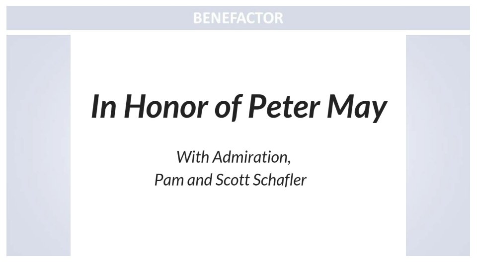 In honor of Peter F. May Dad, we are so proud of you and all your hard-work and dedication to Mount Sinai all these years. We love you! The May-Blauner Clan