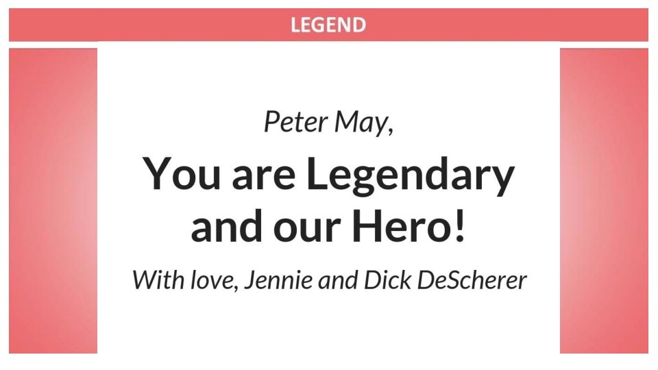 The Department of Dermatology salutes the Breakfast of Legends in honor of Peter May. Dr. Mark Lebwohl Department of Dermatology