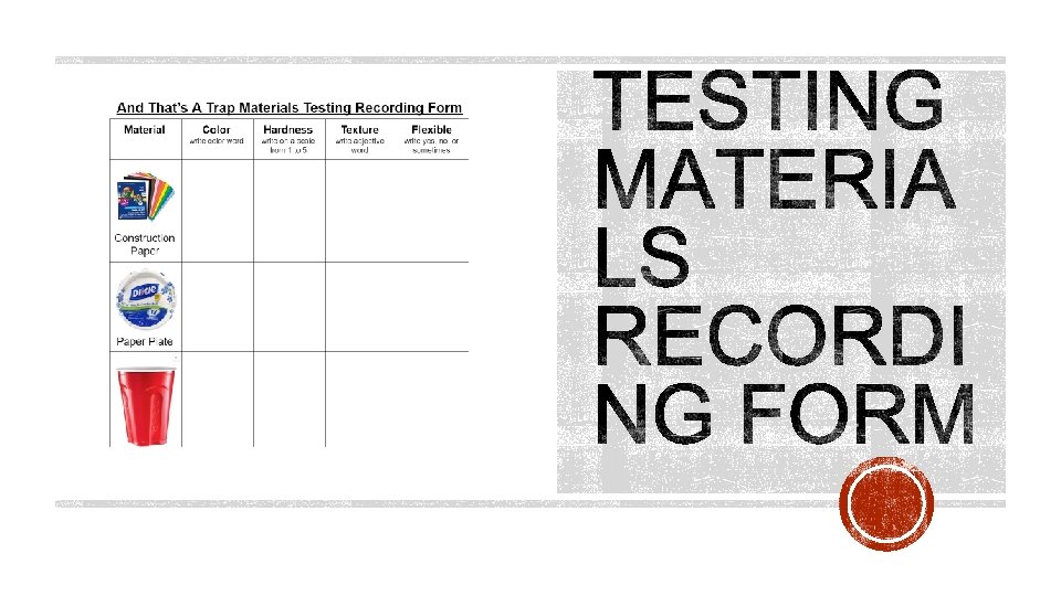 § How a material feels § You will record an adjective to describe the texture of the material