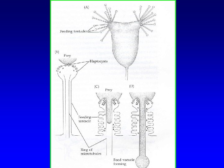 I. Sucking • By tentacles • Suctorian ciliate • Use long narrow tentacles to attach to prey items • Tentacles help it move food into the cell