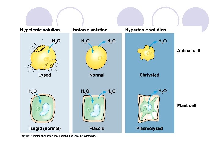 Types of solutions ISOTONIC solution¡ Same amount of water inside and outside of the cell membrane ¡ Cell size remains the same Hyp. Otonic solution¡ More water outside the cell than inside the cell membrane ¡ Cell swells Hypertonic solution¡ More water inside the cell than outside the cell membrane ¡ Cell shrinks