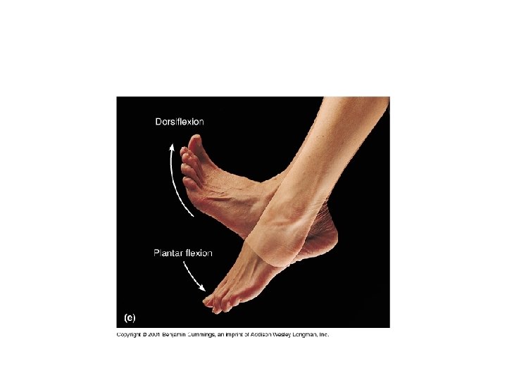 Types of Movements @ Synovial Joints • 7. dorsiflexion/ plantar flexion • dorsiflexion: bending foot @ ankle in direction of dorsum (superior surface) • plantar flexion: bending foot @ ankle in direction of plantar surface