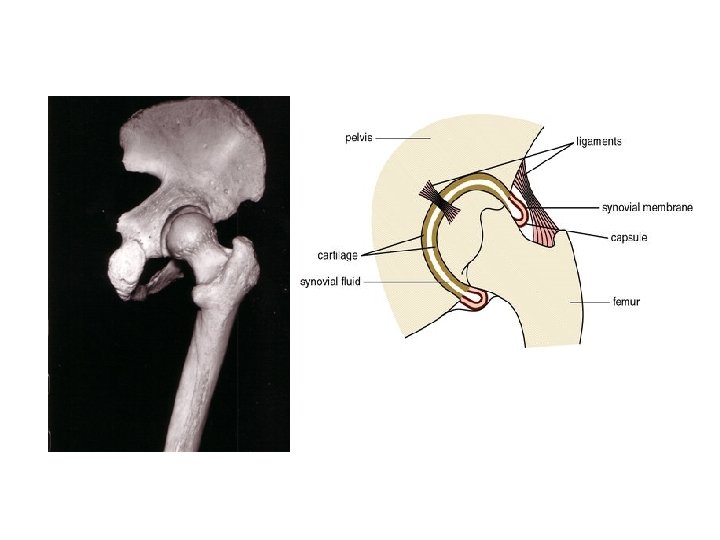 Ball - & - Socket Joint • ball-like surface of one bone fits into a cuplike depression of another bone • permits movement around 3 axis + all directions in between – flexion – extension – abduction – adduction – circumduction – rotation