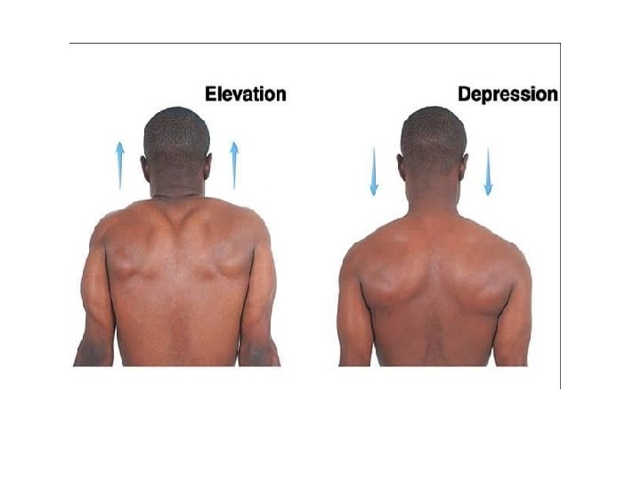 Types of Movements @ Synovial Joints • 4. elevation/depression: • elevation: upward movement of part of body (closing mouth, shrugging shoulders) • depression: downward movement of part of body (opening mouth, returning elevated shrugged shoulders to anatomical position)