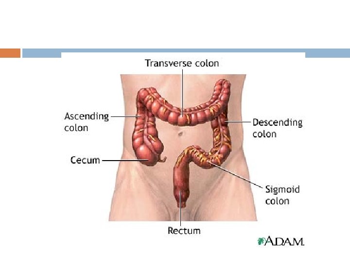 Movements of Large Intestine Principle function: 1. Absorption of water and electrolytes from chyme to form solid chyme 2. Storage of fecal matter until it can be expelled Proximal half- concerned with absorption Distal half- concerned with storage As its function does not needs intense movements normally it will be sluggish and can be divided into mixing and propulsive