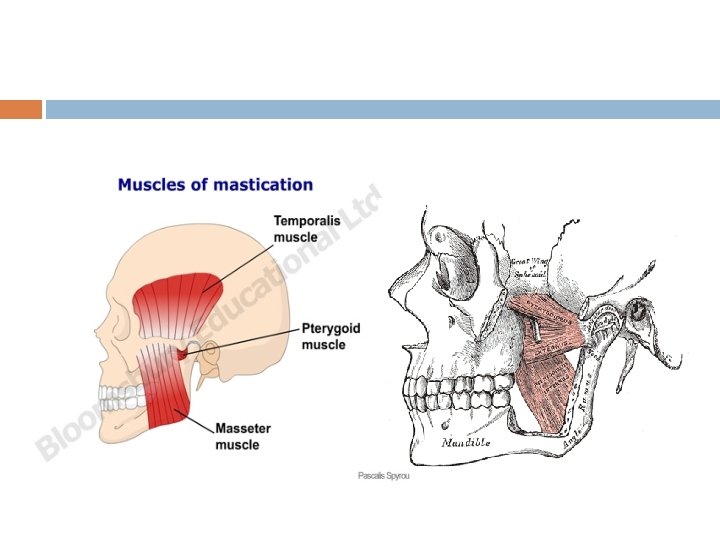 MUSCLES OF MASTICATION Massetor Temporalis Pterygoid Buccinator