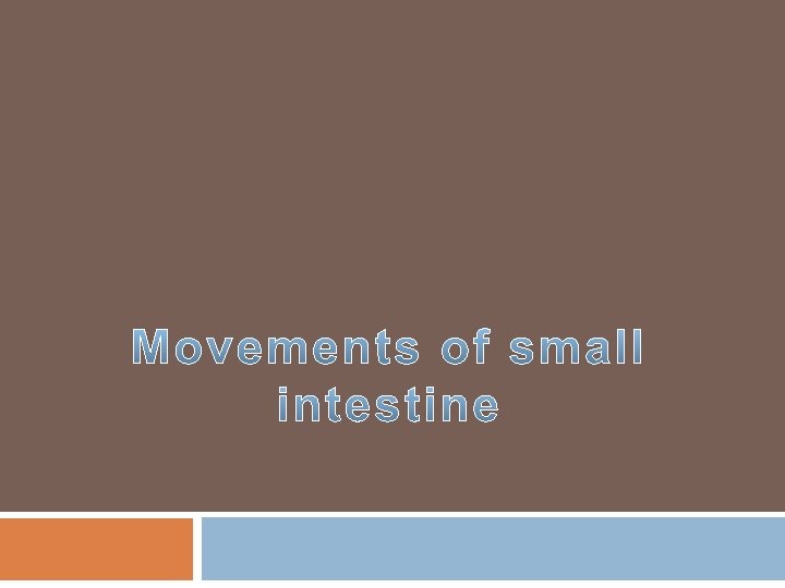 Movements of small intestine 1. Mixing contractions (segmentation contractions) 2. Propulsive contractions (peristalsis)