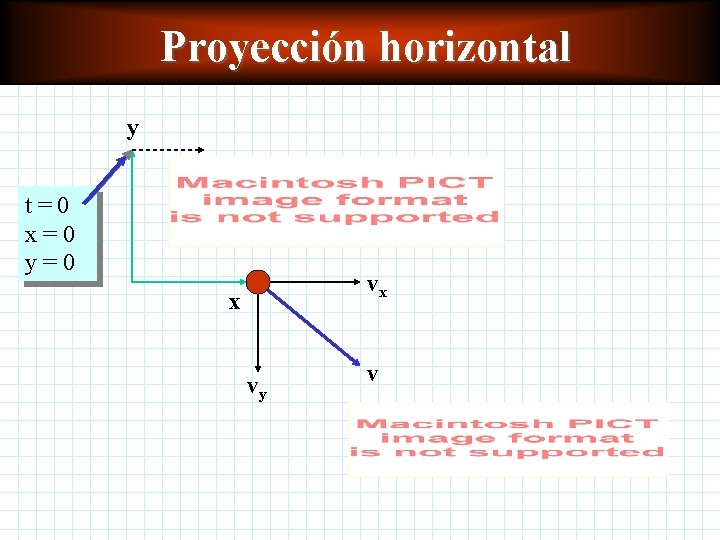 Proyección horizontal y t=0 x=0 y=0 vx x vy v