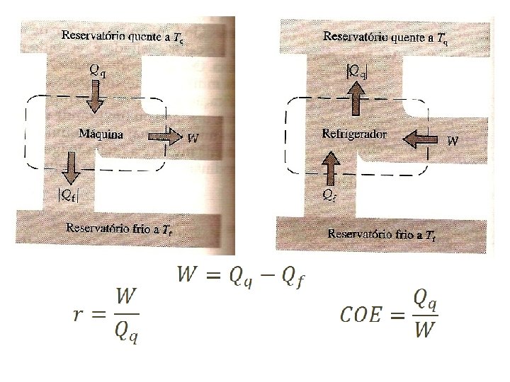 2ª Lei da Termodinâmica • É impossível remover energia térmica de um sistema a uma certa temperatura e converter a energia removida em trabalho mecânico. • Não existe um máquina térmica que tenha 100% de rendimento