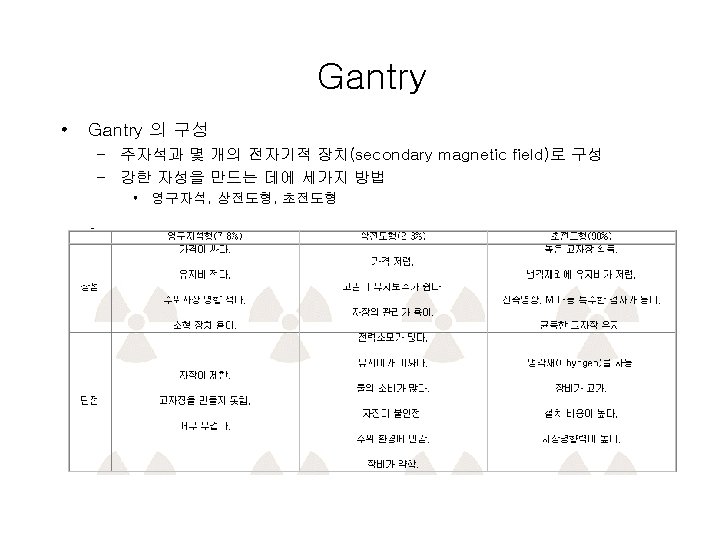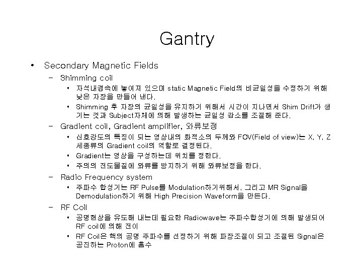 MRI의 구성 • Gantry • Operating Console • Computer