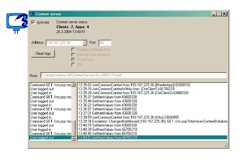Sisältö • Kontekstipalvelun referenssitoteutus ja kontekstipalveluiden ”testerisovellus” • Olemassaolevan Delphi-sovelluksen liittäminen kontekstipalveluun • . NET-kontekstiasiakas • Demo • Muita toteutuksia Windows-tekniikoilla