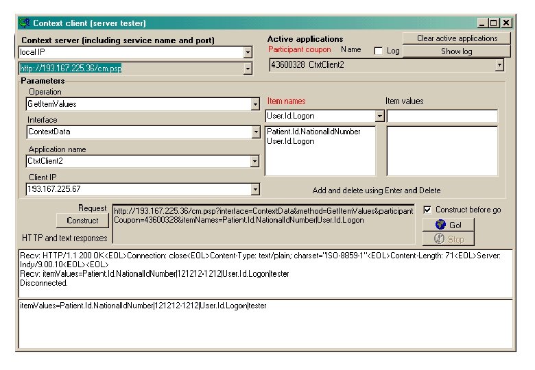 NETContext. Client • get. Item. Values – käyttäjän tai potilaan haku kontekstista – input: kuponki + kontekstista haettavien tietojen nimet – output: kontekstista haettujen tietojen arvot • contact. Context – yhteyden hoitaminen kontekstipalveluun – input: http-kutsun metodi+parametriosa merkkijonona – output: http-kutsun vastaus merkkijonona