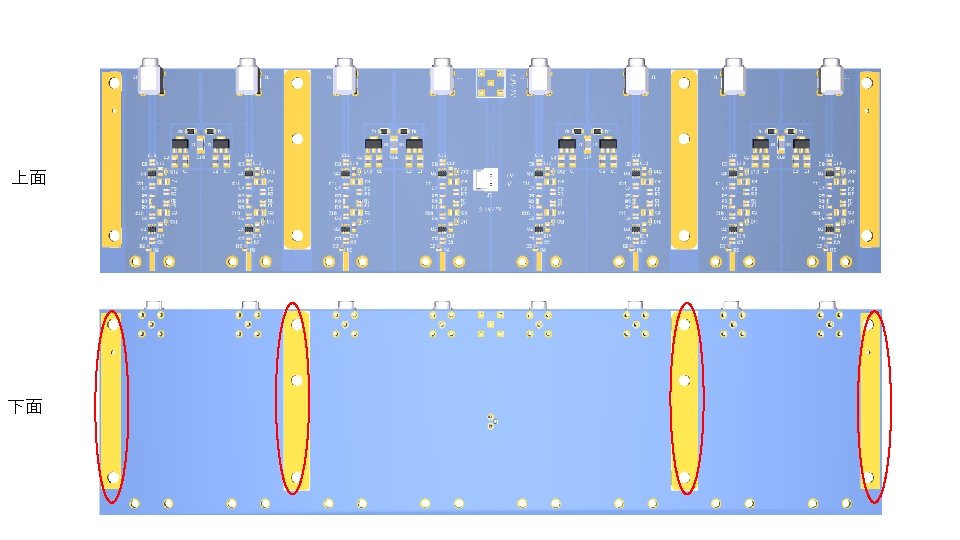Request for 26 mm pitch amplifier 1. Make space w/o components and GND pattern in the bottom face between MCX and Lemo connector with 6 mm width Make pace w/o components In the same position in the top face 2. New 1. 1 mmf through holes for pins to determine the relative positions between the Al plates and the PCB. 3. Move two 3. 1 mmf through holes to the edge (~5 mm distance from the edge for example) 4. 5 4. Increase diameter of through holes φ1. 5 φ2. 1 Increase the distance from the center to 4. 5 mm We will not need these 4 through holes 91