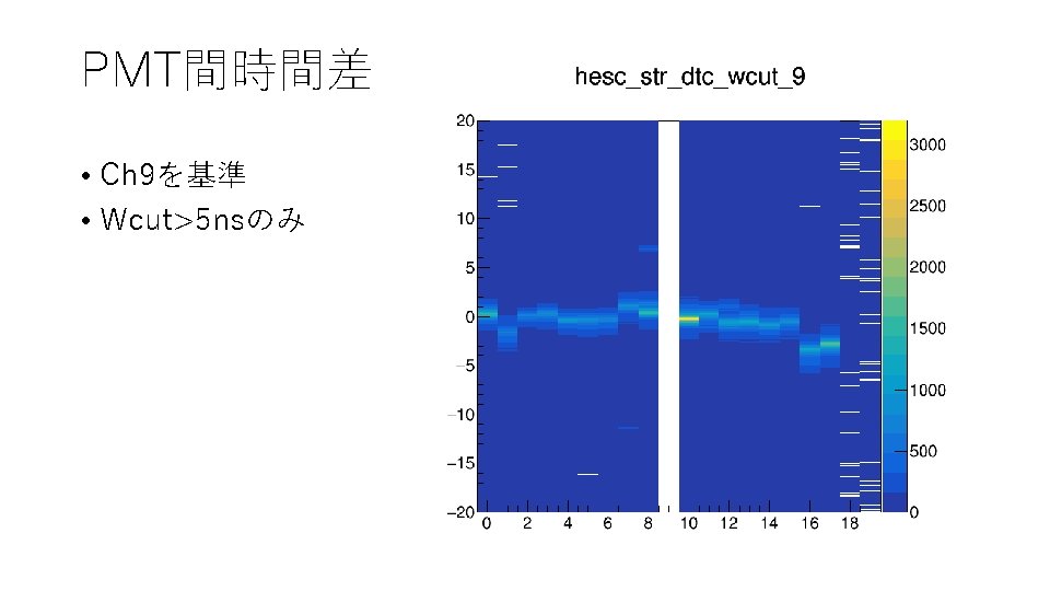 PMT間時間差 • Ch 9を基 準 • Wcut>5 ns • Nhit PMT =0 >=6