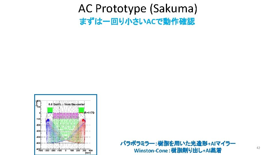 Design (by Sakuma) HOD: RPC AC: index=1. 034 TOF: Scinti. +PMT 1 GEM-in GEM-mid GEM-out 15 4 2 AC HOD (=RPC) TOF (=Scinti) 45 3 15 45 1400へ 41