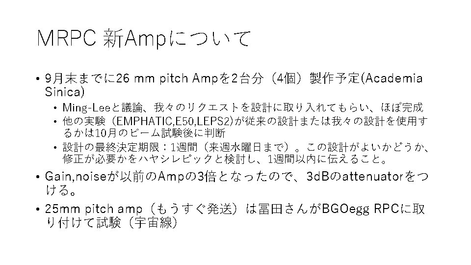 MRPC Meeting 2020/9/8 H. Sako スケジュール 各自報告 MRPC製作について MRPC/TSC/ESC解析