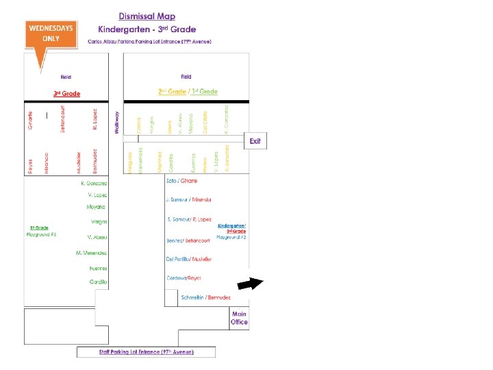 Afternoon Dismissal v Parents must park in the Carlos Albizu parking lot and walk to the front of the school to pick up their child. v Dismissal is at 2: 00 pm until 2: 15 pm. After 2: 15, you will be charged a late pick‐up fee of $1. 00 per minute. (Ex: If you are 45 minutes late, you will be charged $45) v If someone is picking up your child and your teacher is not familiar with that person, your teacher will not release your child to that person. The person must be authorized on the emergency contact card prior to picking up your child and must bring picture identification. v Your child notifying your teacher verbally will not suffice. v You may send an e‐mail or call the school and they will notify your child’s teacher in the event that it is a last minute thing.
