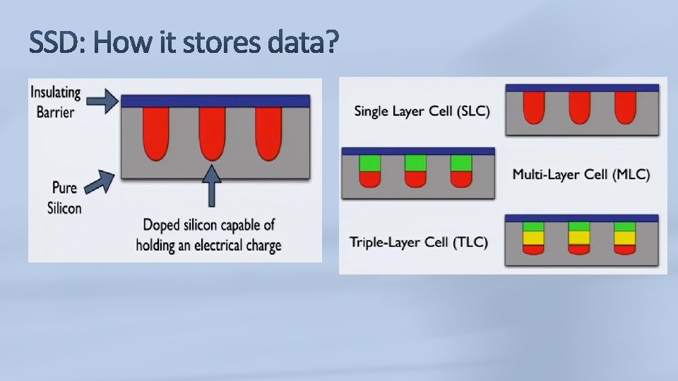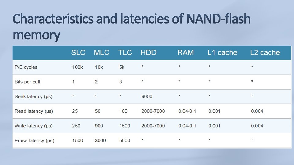 Latency difference for each type. More levels increases the latency: Delays in read and write. Solution: Hybrid SDD, consisting mixed levels