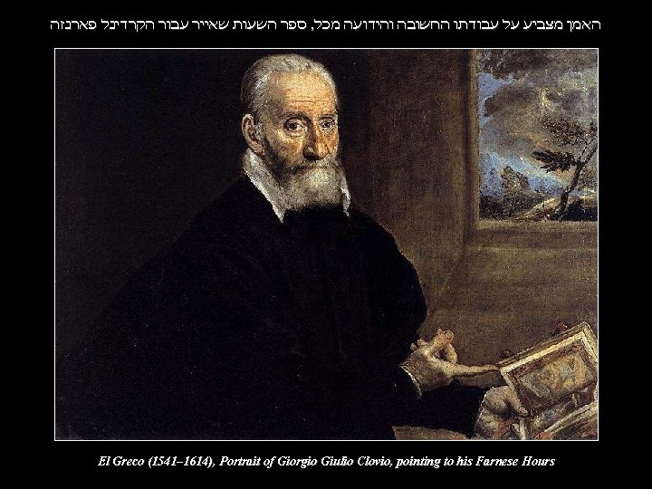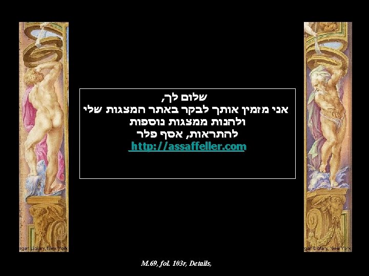 : מקורות http: //en. wikipedia. org/wiki/Giulio_Clovio http: //utu. morganlibrary. org/m 69 http: //de. wikipedia. org/wiki/Stundenbuch_des_Kardinals_Alessandro_Farnese http: //commons. wikimedia. org/wiki/Category: Farnese_Hours? uselang=de פלר אסף : עריכה M. 69, fol. 39 r, Detail