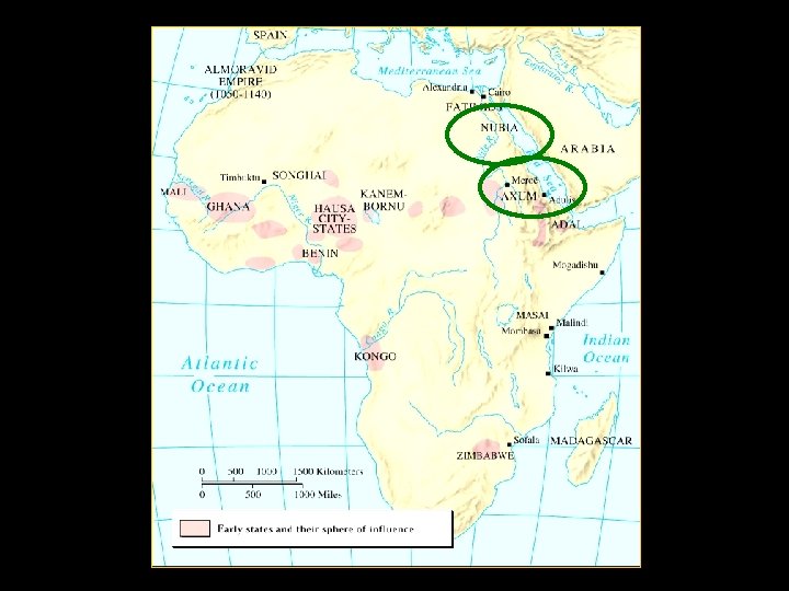 Ms Susan M Pojer Horace Greeley HS Chappaqua Slides: 52 Download presentation Ms. Susan M. Pojer Horace Greeley HS Chappaqua, NY Pre-Historic Africa Kingdom of Kush [295 BCE – 320 CE] Nubia [modern-day Sudan] Pyramids of Kush at Meroë Pyramids of Kush at Meroë Kushite in Egypt, 23 BCE Kingdom of Axum [300 -700] Stele, Ezana’s Royal Tomb, Aksum (4 c) Christian Church, Lalibela [Ethiopia] Christian Church, Lalibela [Ethiopia] Coptic Christian Priest Controlled NE African Trade AXUM’S ACHIEVEMENTS Written Language Built Stelae Terrace Farming Spread Christianity in No. & E. Africa Gold-Salt Trade SALT GOLD Berbers Ghana Empire [4 c-11 c] Gold “Money”, Ghana/Ivory Coast Salt Mali Empire SALT GOLD [13 c-15 c] Timbuktu-”Heavenly Clay” Timbuktu Rooftop, Mosque Tuaregs Marketplace near the Niger River Mosque in Gao Great Mosque at Djenne, Mali Distant Mosque at Djenne, Mali Sundiata [1210 -1260] “Lion Prince” Mansa Musa [r. 1312 -1337] European Map Songhai Empire SALT GOLD [15 c-16 c] Sunni Ali [r. 1464 -1492] Askia Mohammed [r. 1493 -1529] Askia Mohammed’s Tomb Gao, Mali [1443 -1538] Benin Empire [15 c-19 c] Bronze Heads from Benin (16 c) Benin Bronze Leopard Bantu Migrations: 1000 BCE To 500 CE Islamic Invasions African Trade Routes Swahili-Speaking Areas of E. Africa SWAHILI [“the coast’] = Bantu + some Arabic Arab Dow off the coast of Zanzibar Great Zimbabwe [1200 -1450] “Zimbabwe” = “stone enclosure” Great Zimbabwe Street Great Enclosure, Zimbabwe Manamotopa Empire [1450 -1630] Overland & Sea Trade Routes by 16 c African Trade [15 c-17 c]