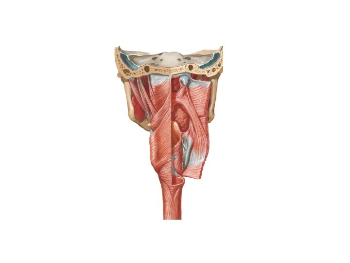 Faringe • • Es la porción del aparato digestivo situada detrás de la cavidad nasal y bucal y se extiende más abajo de la laringe. Va desde la base del cráneo hasta el borde inferior del cartílago cricoides y hasta el borde inferior de la vértebra C 6. Su diámetro máximo 5 cm. Se encuentra en el plano del hioides y el mínimo en el extremo inferior donde se continúa con el esófago: 1. 5 cm. La pared posterior se apoya sobre la capa prevertebral de la fascia cervical profunda.