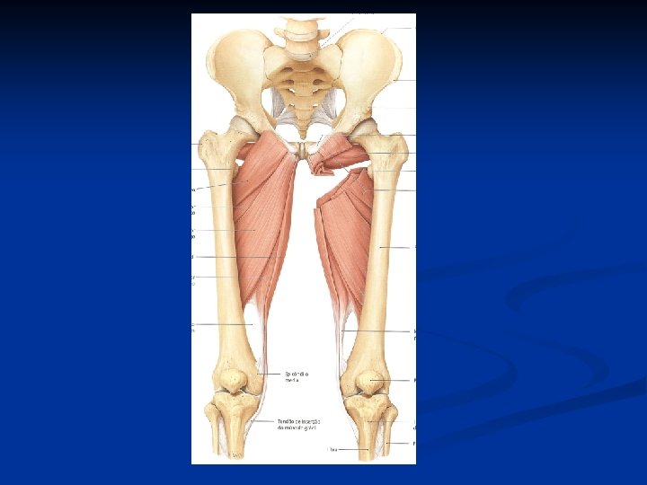 Adução da coxa: Adutor magno n Adutor longo n Adutor curto n Pectíneo n Grácil n
