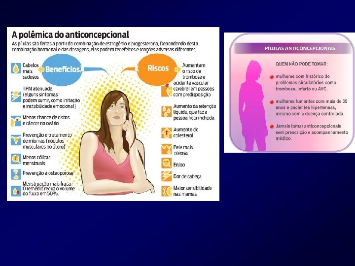 Pílula Anticoncepcional (Anovulatória). A pílula atua, portanto, por meio de feedback negativo (retroalimentação negativa), impedindo o amadurecimento e a eliminação do óvulo. *Minipílula - Ela é constituída, basicamente, de progesterona sintética e estimula o aumento de secreção do muco cervical, servindo de barreira à passagem dos espermatozóides.