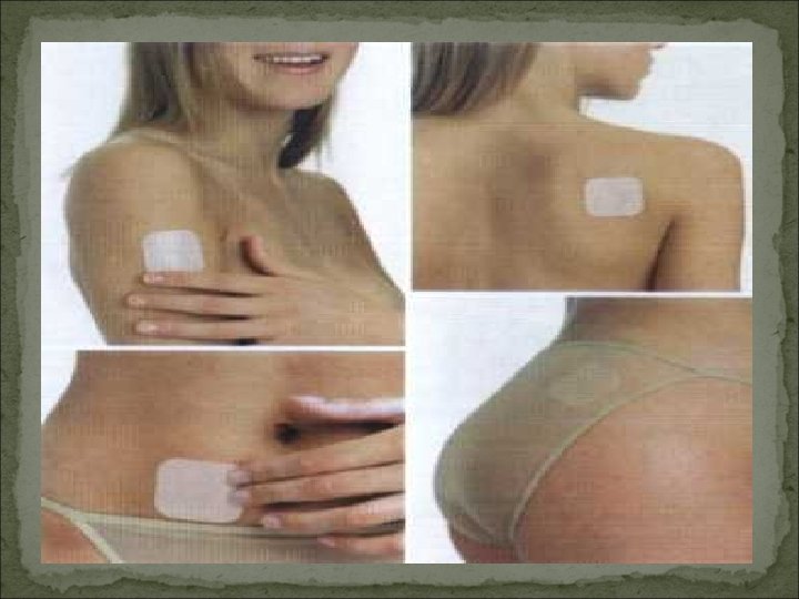 �Parche anticonceptivo: Un pequeño parche, similar a una tirita de 4, 5 cm. de lado y menos de 1 mm de grosor, se coloca sobre la piel; este parche contiene las hormonas, al igual que los otros métodos hormonales, y las va soltando siendo absorbidas a través de la piel. �Los efectos secundarios y la eficacia son como las de la píldora puesto que se trata de las mismas hormonas, aunque la vía de administración es distinta.