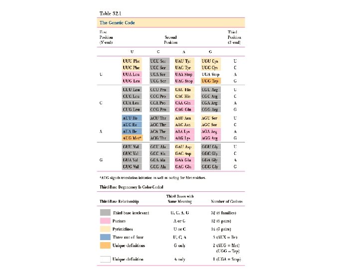 Wobble Hipotezi • Kodonun ilk iki bazı antikodonun 2. ve 3. bazlarıyla normal H-bağları yaparlar. • Kalan pozisyonda, daha az katı kurallar uygulanır ve normalde gözlenmeyen eşleşme oluşabilir. • Kurallar: Antikodonda – birinci baz U, – birinci baz G, – birinci baz I, – • Kodonda A veya G’yi tanıyabilir; U veya C’yi tanıyabilir; ve U, C veya A’yı tanıyabilir (I, A’nın deaminasyonuyla oluşur) Wobble Avantajı: m. RNA’dan t. RNA’nın disosiasyonu ve protein sentezi daha hızlı olur.