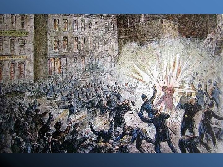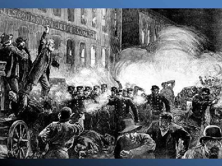 Haymarket Square Riot • Chicago, May 4, 1886 • 8 hour work day was scheduled to be implemented on May 1, 1886 • Some bosses weren’t following that law • Someone threw a bomb at the police • Most people thought it was an anarchist or socialist. Why?