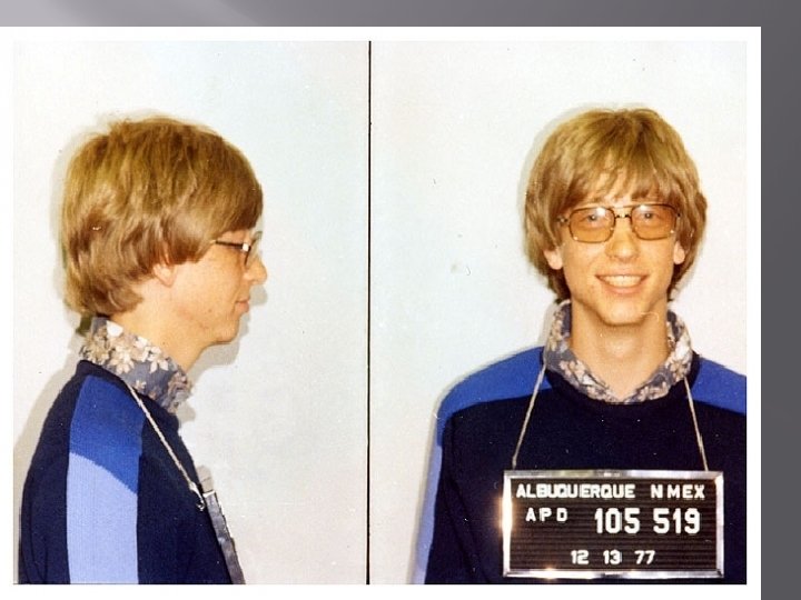 BILL GATES Microsoft boss Bill Gates was photographed by the Albuquerque, New Mexico police in 1977 after a traffic violation (details of which have been lost over time).