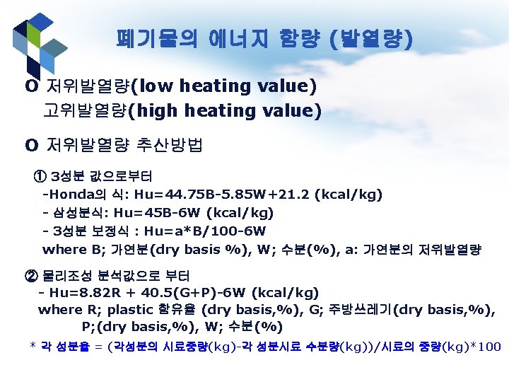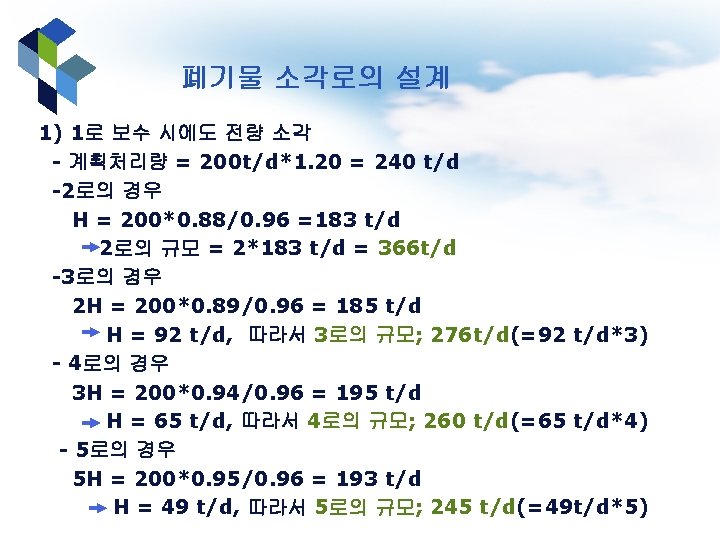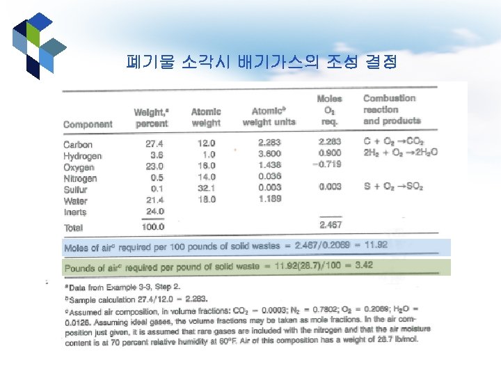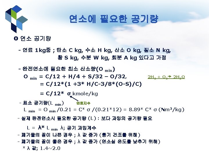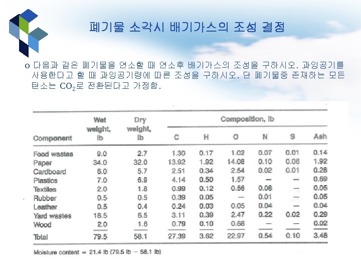 *1 t=0. 0005 lb *125 t/d*1 t/0. 0005 lb=250, 000 lb/d O 2/C=32/12, 공기중 O 2 0. 2315 가정 O 2/2 H 2=32/4, 공기중 O 2 0. 2315 가정