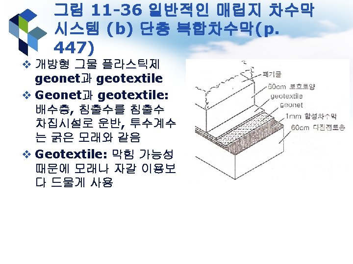 그림 11 -52 Layers of a landfill liner (p. 466)