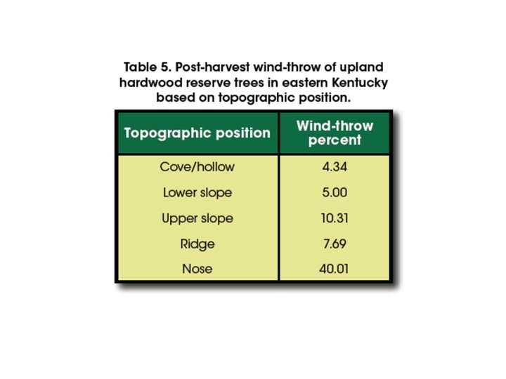 Potential Drawbacks/Disadvantages of Selection Systems • Involves a high level of complexity, requires higher management costs than other methods • Produces less pulpwood than other methods • Harvesting more difficult and costly per unit area than with even-aged methods • Results in more logging damage to residual trees than with even-aged methods – • Due to frequent entry of harvesting equipment Leads to long-term depletion of growing stock if not applied carefully