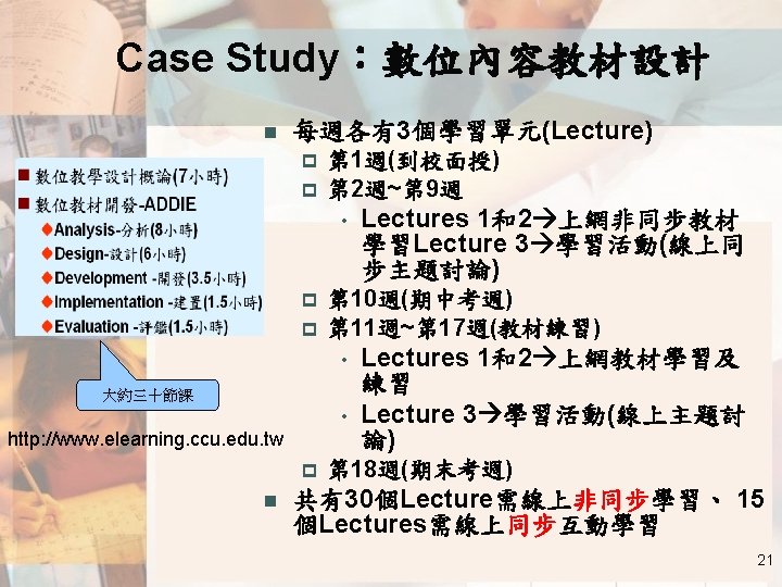 Synchronous Strategies Strategy Description Interview subject-matter experts for their perspective or accounts of Role play Create a controlled environment in which learners develop skills such as interviewing or overcoming objections. others can practice listening their experiences. and analysis skills. Debate Use debate to provide a forum for opposing views Panel discussion Bring experts together and provide a moderator to ask questions Class discussion invite learners to talk about a given subject in an open format. Question and answer Invite learners to ask questions after a panel discussion, interviews, and presentations Games Create games to engage learners in competitive problem-solving situations or require learners to work in teams to find answers. 資料來源: Driscoll, M. (2002). Web-based training : creating e-learning experiences. San Francisco: Jossey-Bass/Pfeiffer. 25