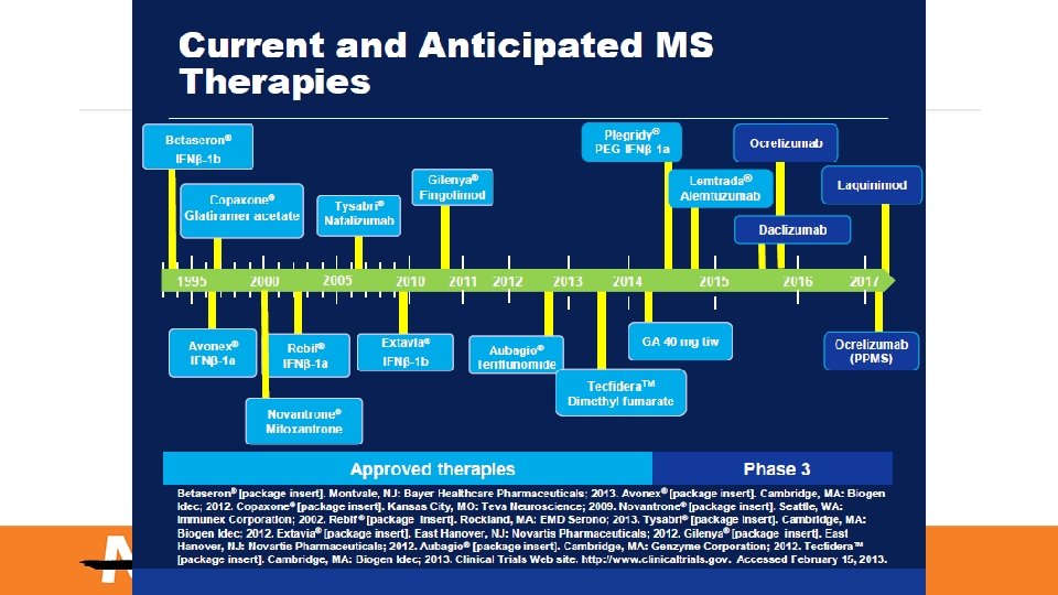 The Changing Landscape of MS Disease Modifying Treatment Of Approved and Emerging Therapies IFNβ-1 a IM qwk Teriflun PO qd Alemtuz IV IFNβ-1 a SC tiw IFNβ-1 b SC qod GA SC qd Mitox IV q 90 d wks Natalizuma b IV q 4 wks BG-12 PO bid Fingolimo d 0. 5 mg gd Daclizuma b SC Laquin PO 90 19 92 19 94 19 96 19 98 19 00 20 02 20 04 20 06 20 08 20 10 20 12 20 14 20