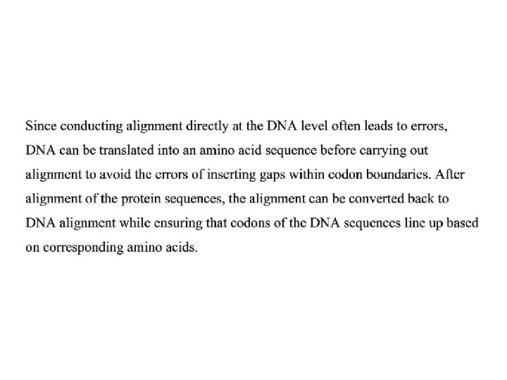 Summary • Clustal – Guide tree – Greedy nature – Global alignment • How to align protein-coding DNA sequences?