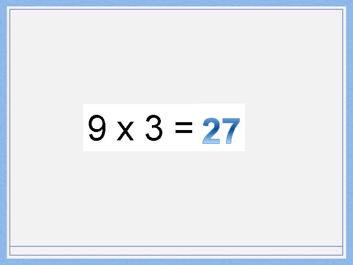 4 x 3 = 12 9 x 3 = 27 6 x 3 = 18 3 x 3=9 1 x 3=3 2 x 3=6 5 x 3 = 15 7 x 3 = 21 8 x 3 = 18